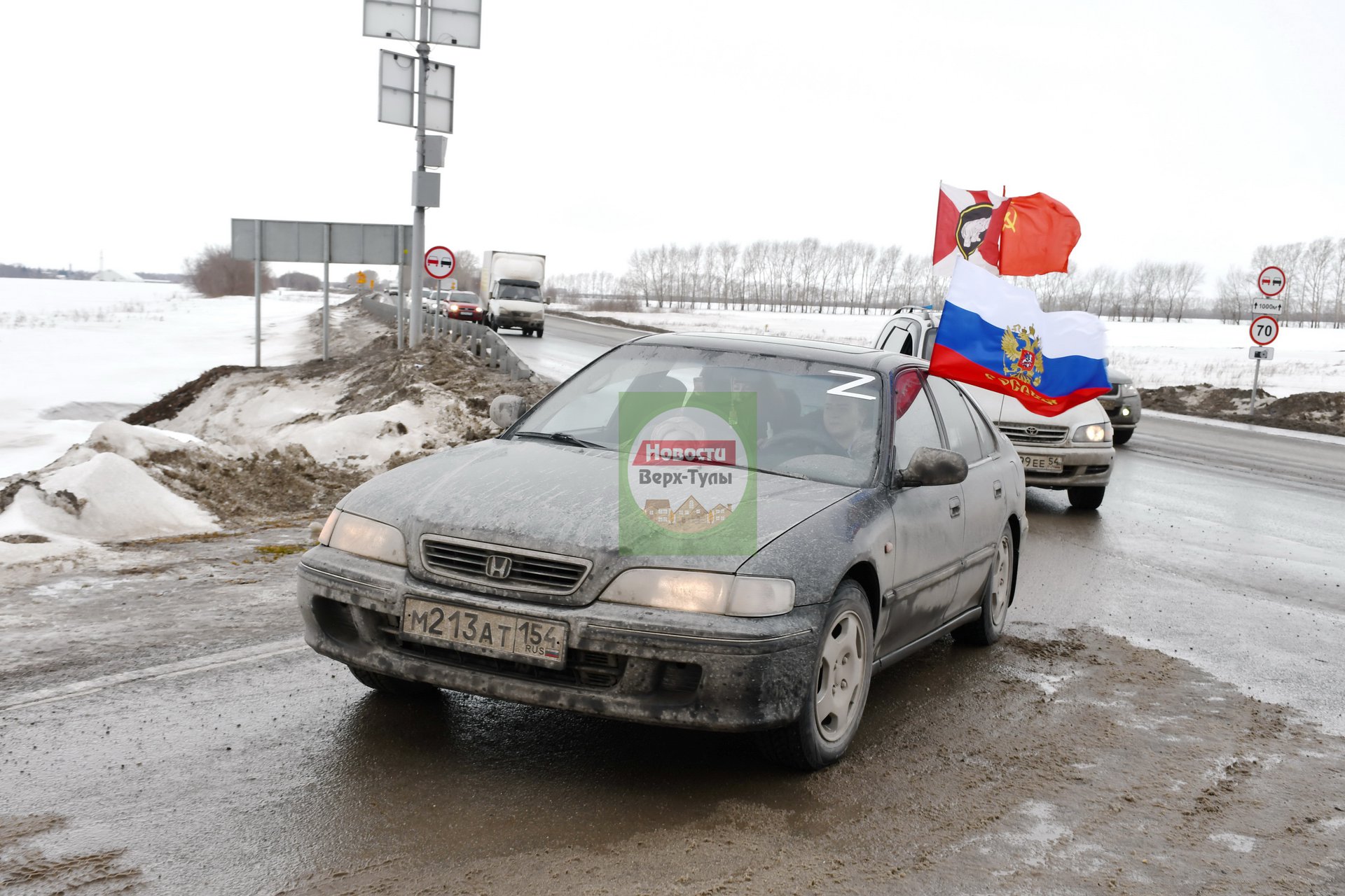 На некоторых автомобилях была наклеена буква Z, из окон развевались российские флаги. Патриоты стартовали с территории МЭЦ в полдень. В числе участников были депутаты нашей территории, руководители предприятий, педагоги, тренеры, семьи верхтулинцев, молодежь, жители поселков. Лично за рулем своего автомобиля была и глава Верх-Тулинского сельсовета Майя Ивановна Соболёк.